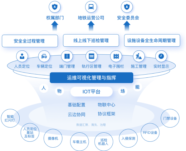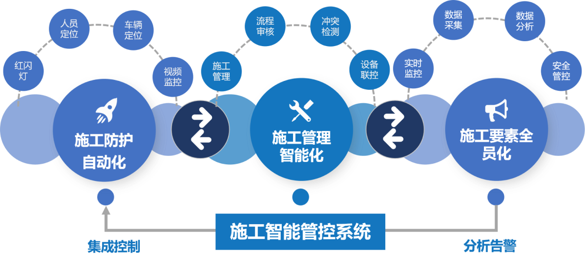 结合地铁运营的业务流程布设施工智能作业管控系统,增加施工安全自动管控能力、提高施工作业效率。